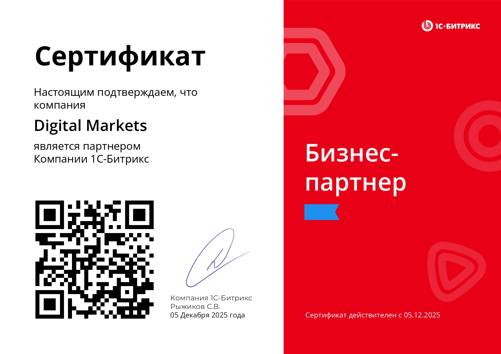 Компания “Диджитал Маркетс” обладает богатым опытом создания сайтов различной направленности, в том числе и для государственного сектора. Являясь сертифицированным партнером компании Битрикс, наша компания имеет компетенцию «Решения для государственных организаций» которая предоставляется партнерам, успешно создающим индивидуальные интернет-проекты на платформах «1С-Битрикс» для государственной организаций и учреждений, что подтверждает нашу высокую квалификацию в данных вопросах.